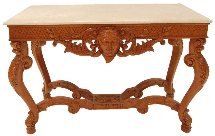 Consola stil Rococo realizata din lemn masiv, lucrat manual, si blat din marmura.